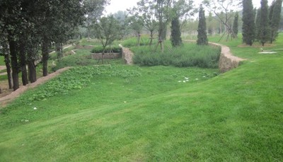 邊坡植草綠化,根據(jù)地形設(shè)計(jì)坡度,保證邊坡穩(wěn)定性的同時(shí)考慮景觀效果。邊坡植草,不僅美化環(huán)境,植物根系生長(zhǎng)利于邊坡穩(wěn)定,固結(jié)土壤,減少水土流失。